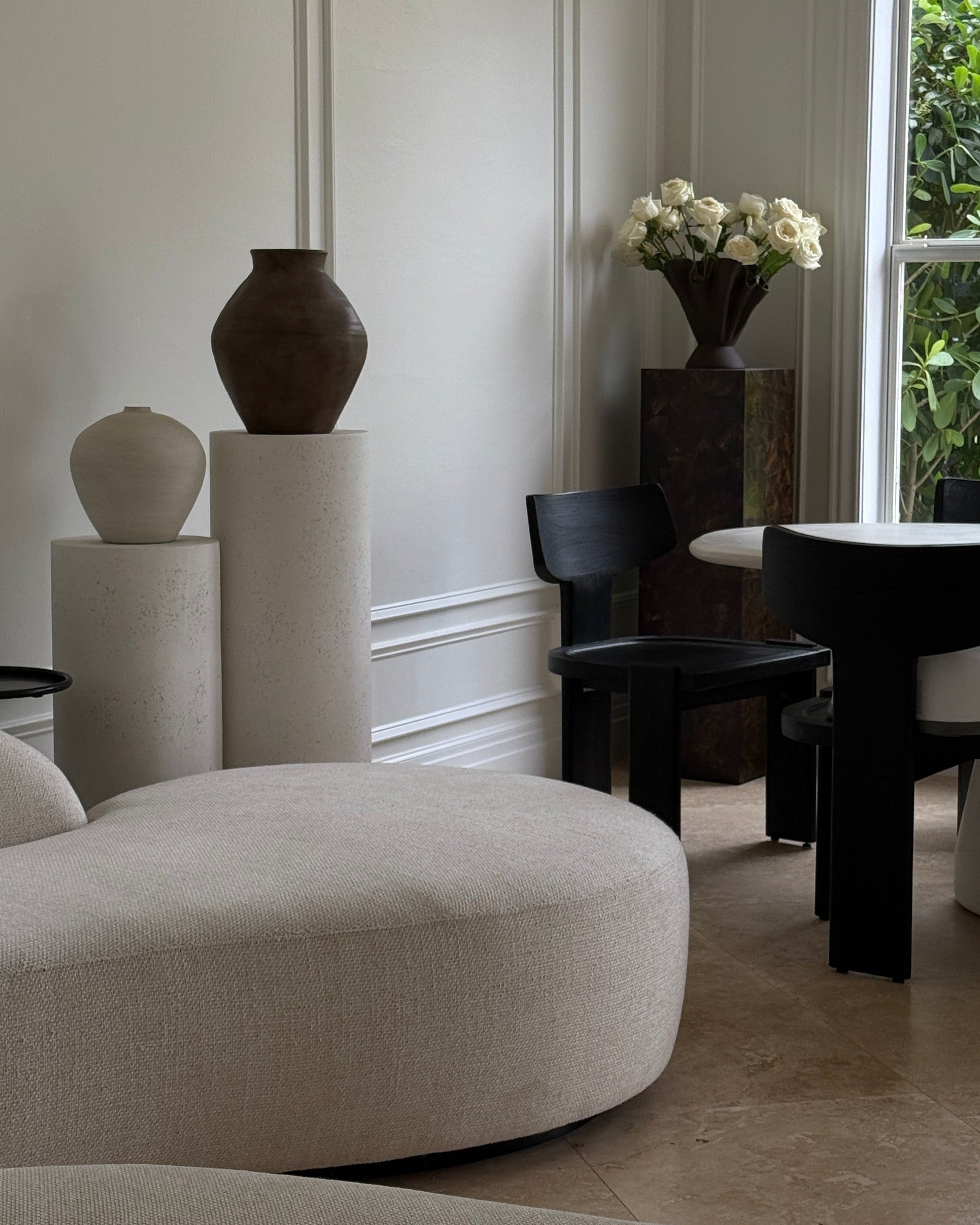The Taurus pedestal, designed by J Kent Martin, is meticulously hand-cut and assembled from a mosaic of faux brown horn shapes and sizes, seamlessly fitting together like puzzle pieces to form a striking veneer. Each piece showcases a unique color variation, inherent to the material. With its neutral tones, this captivating pedestal effortlessly complements various living spaces. Perfect for displaying a favorite sculpture, it makes an elegant statement in a living room, office or, dining room. Available in two sizes.