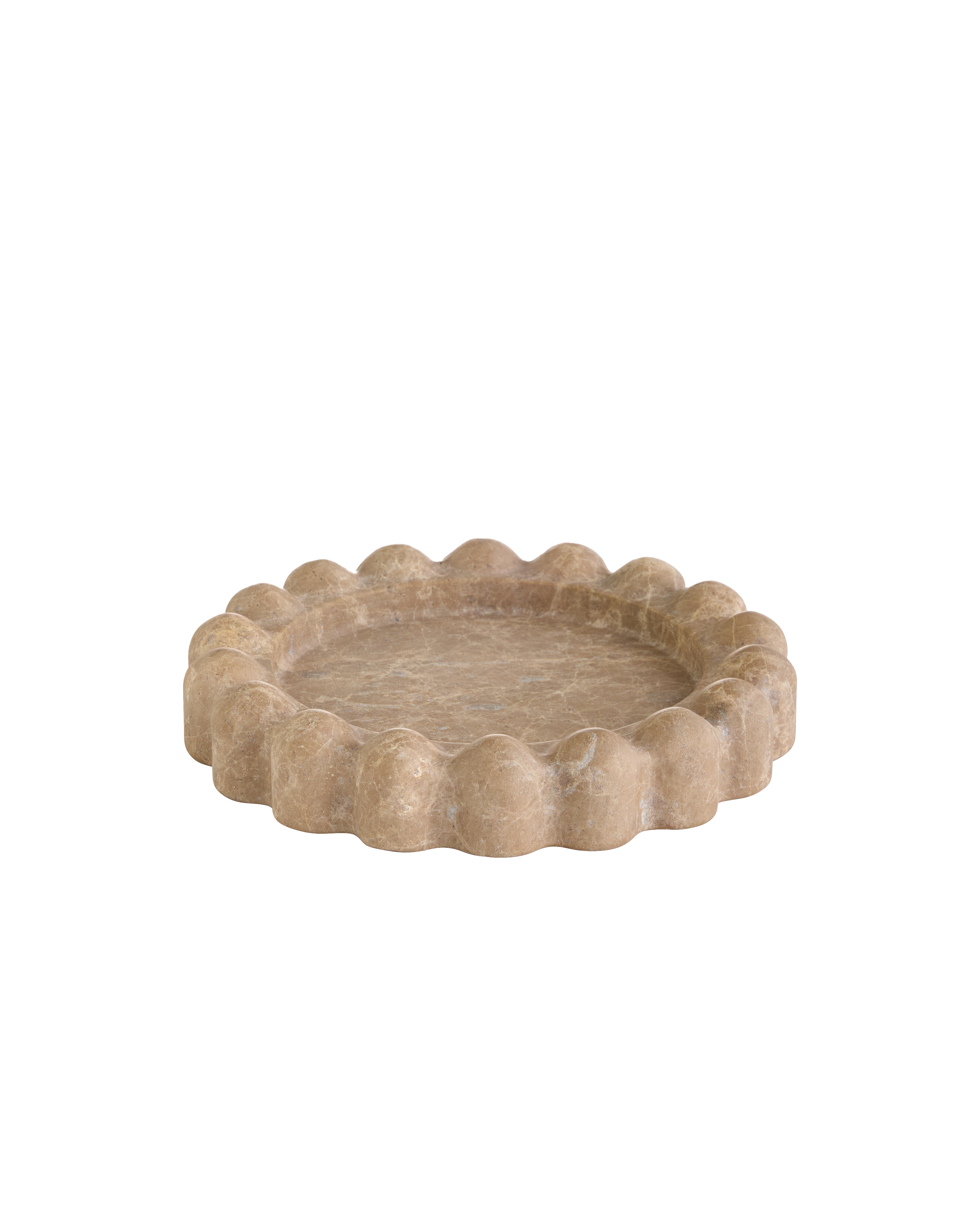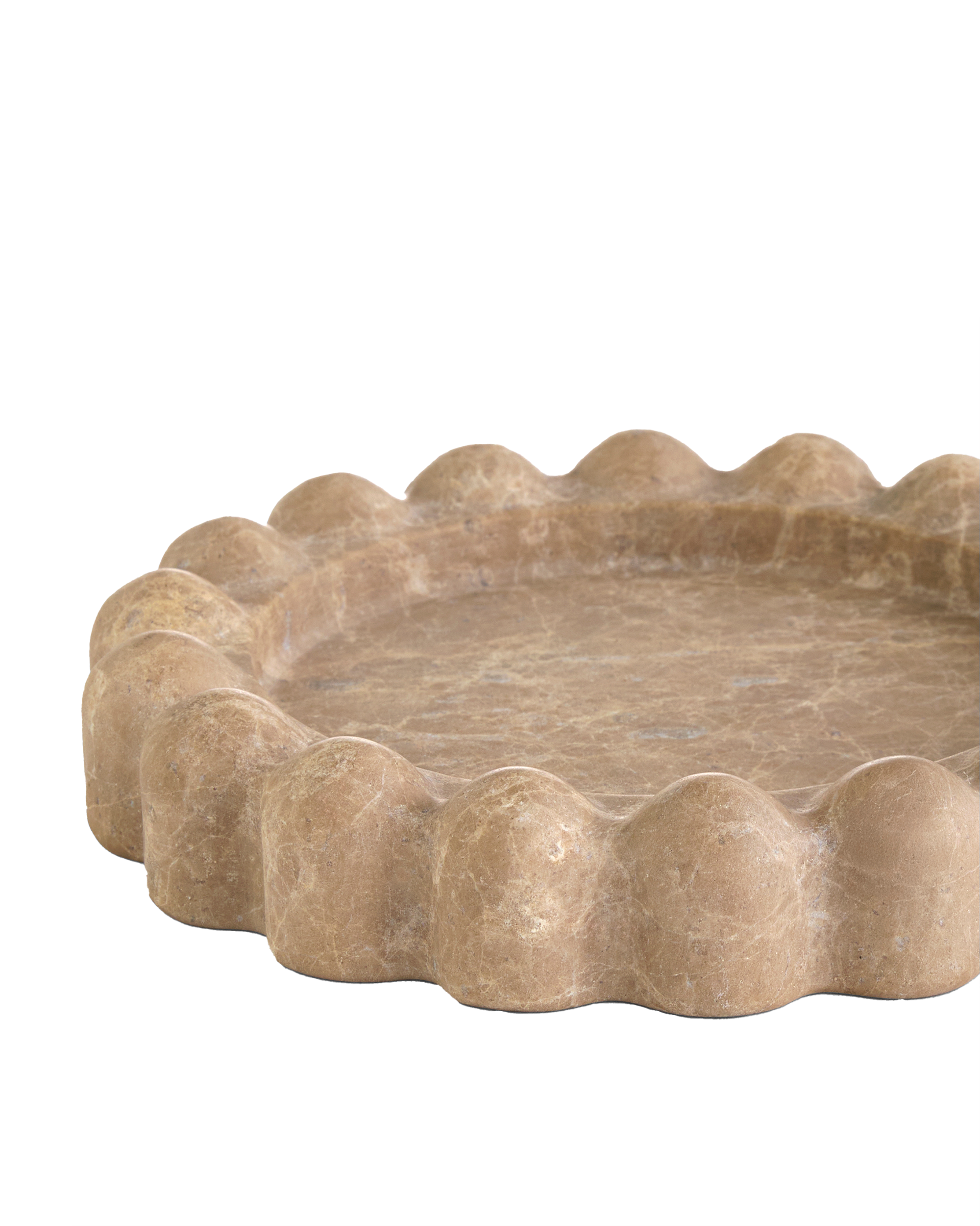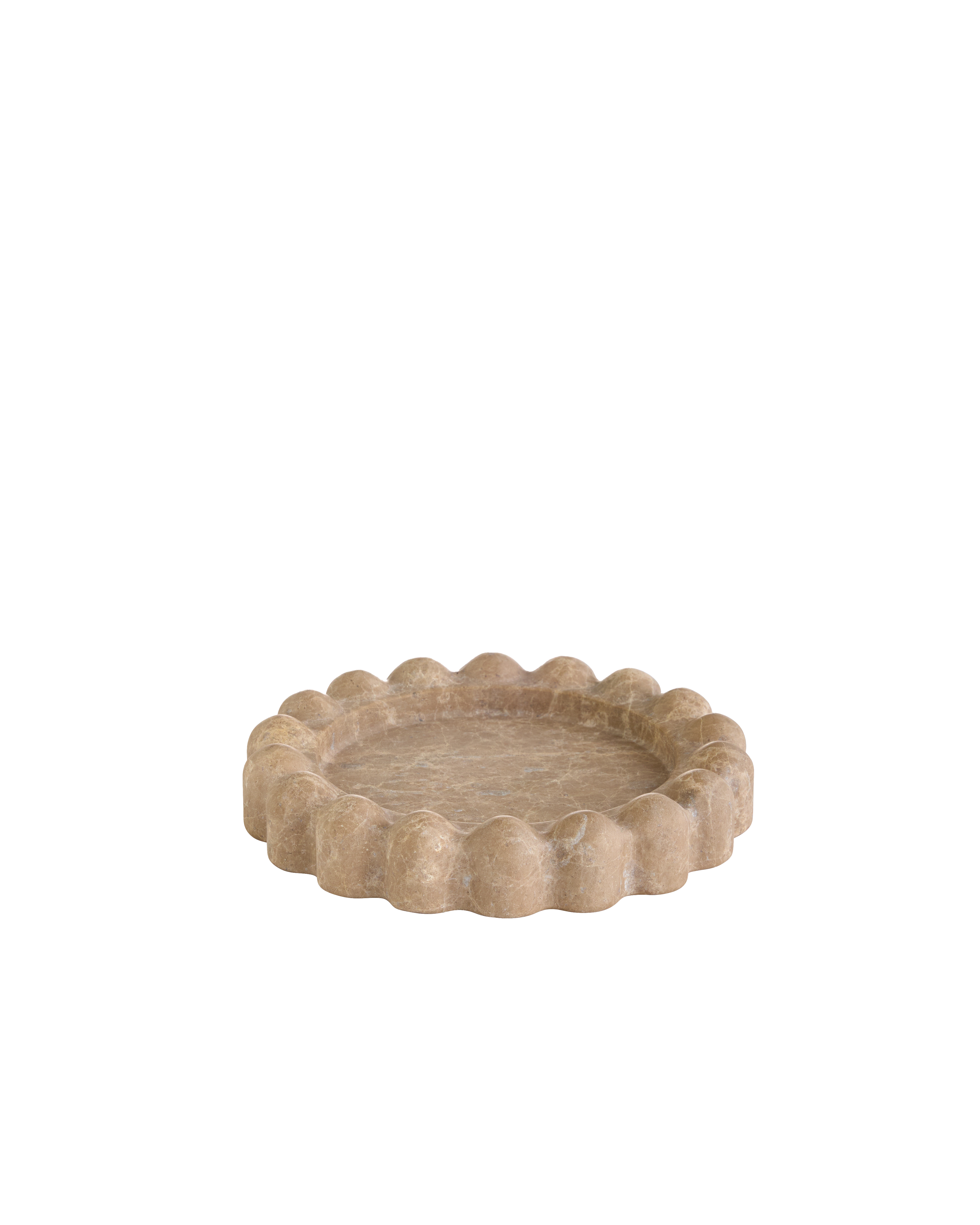 The Scallop Travertine Tray is inspired by the graceful charm of scalloped edges, showcasing a bold yet refined silhouette carved from natural stone. Its versatile form makes it perfect as a catch-all tray, effortlessly enhancing any space with texture and visual appeal.